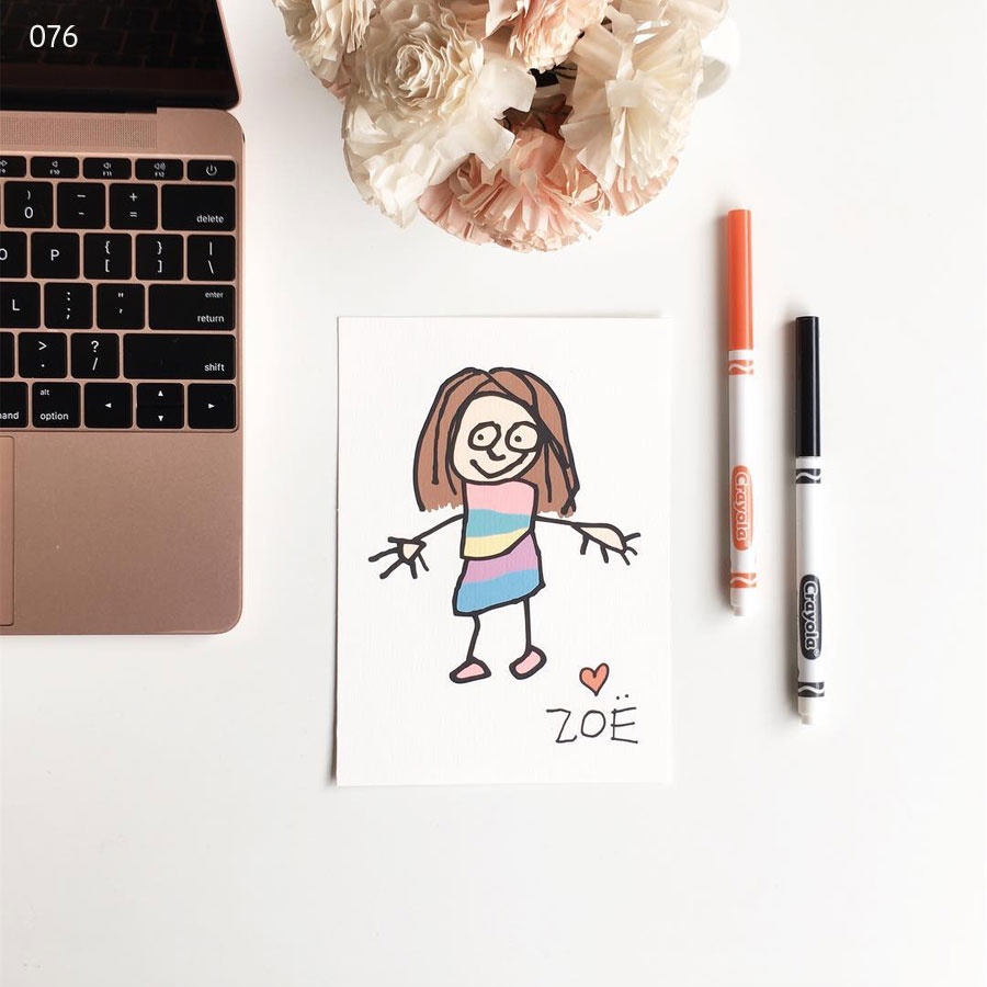 In preparation for my daughter’s 5th Birthday party, we worked on a simple mother-daughter collaboration. I picked out one of Zoe’s selfie doodles, digitized it and used it as art for her thank-you tags. I loved how it turned out, we even used the design on her cake! It was also a treat watching her face light up upon seeing her own drawing turned into a finished artwork.