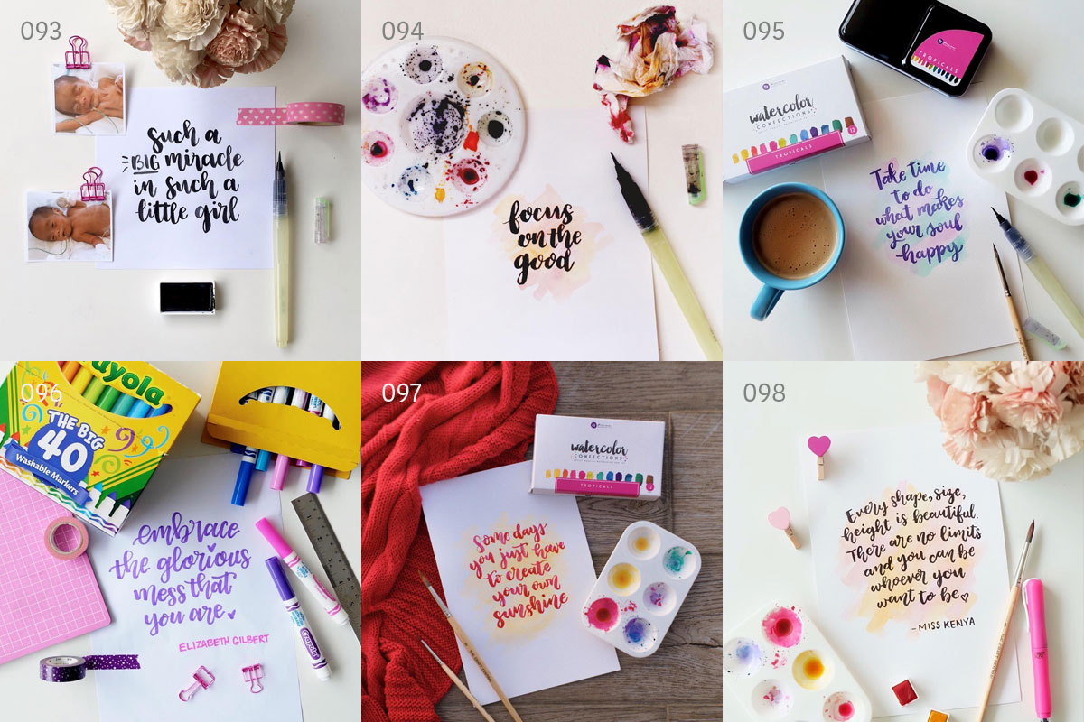 The whole challenge definitely pushed me to practice my hand lettering. After weeks of writing, I’ve realized that brush lettering is really more my style. Each stroke and flick of the brush, I’ve learned to delight in.